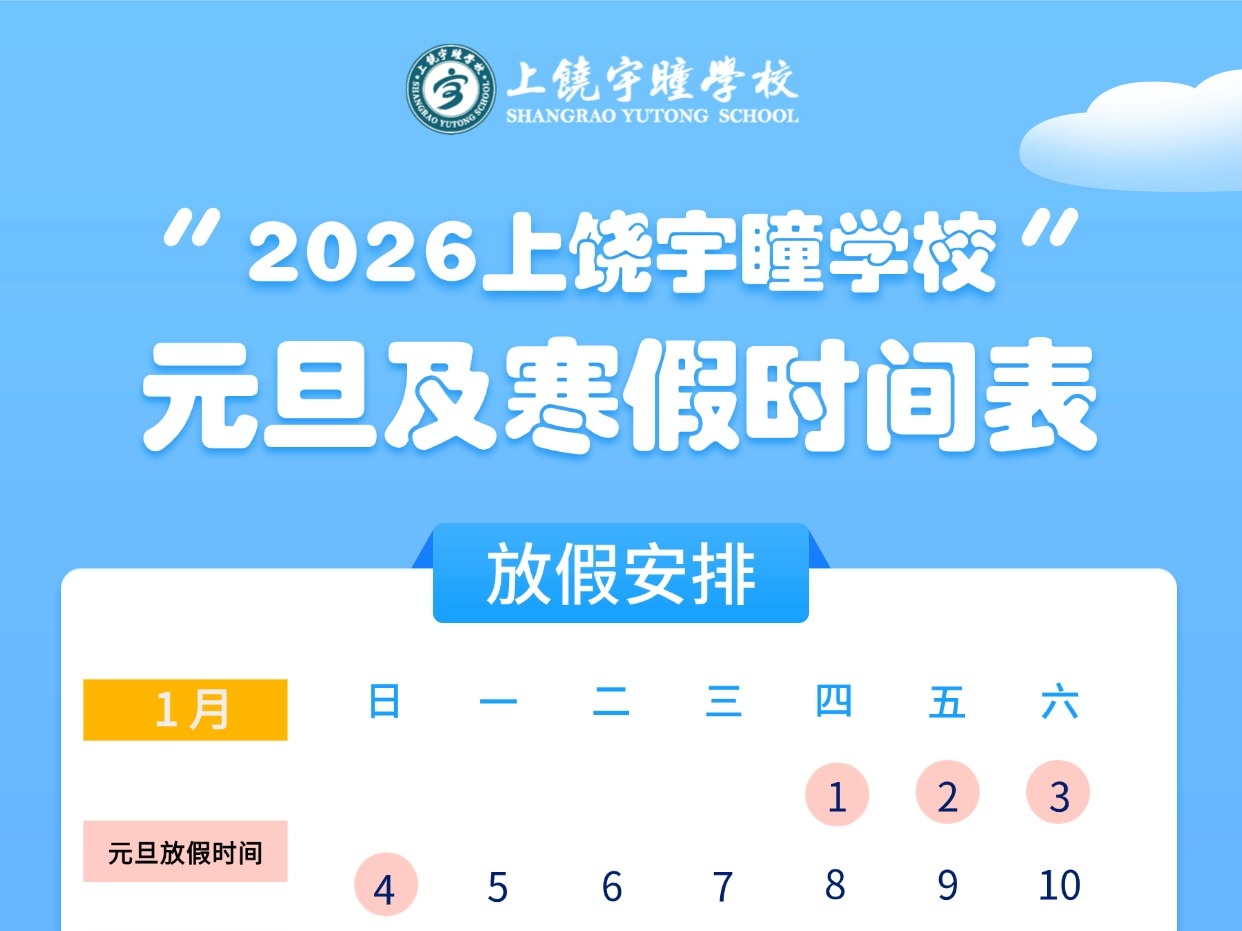 上饶宇瞳学校2025-2026学年元旦、寒假及新学期开学具体安排