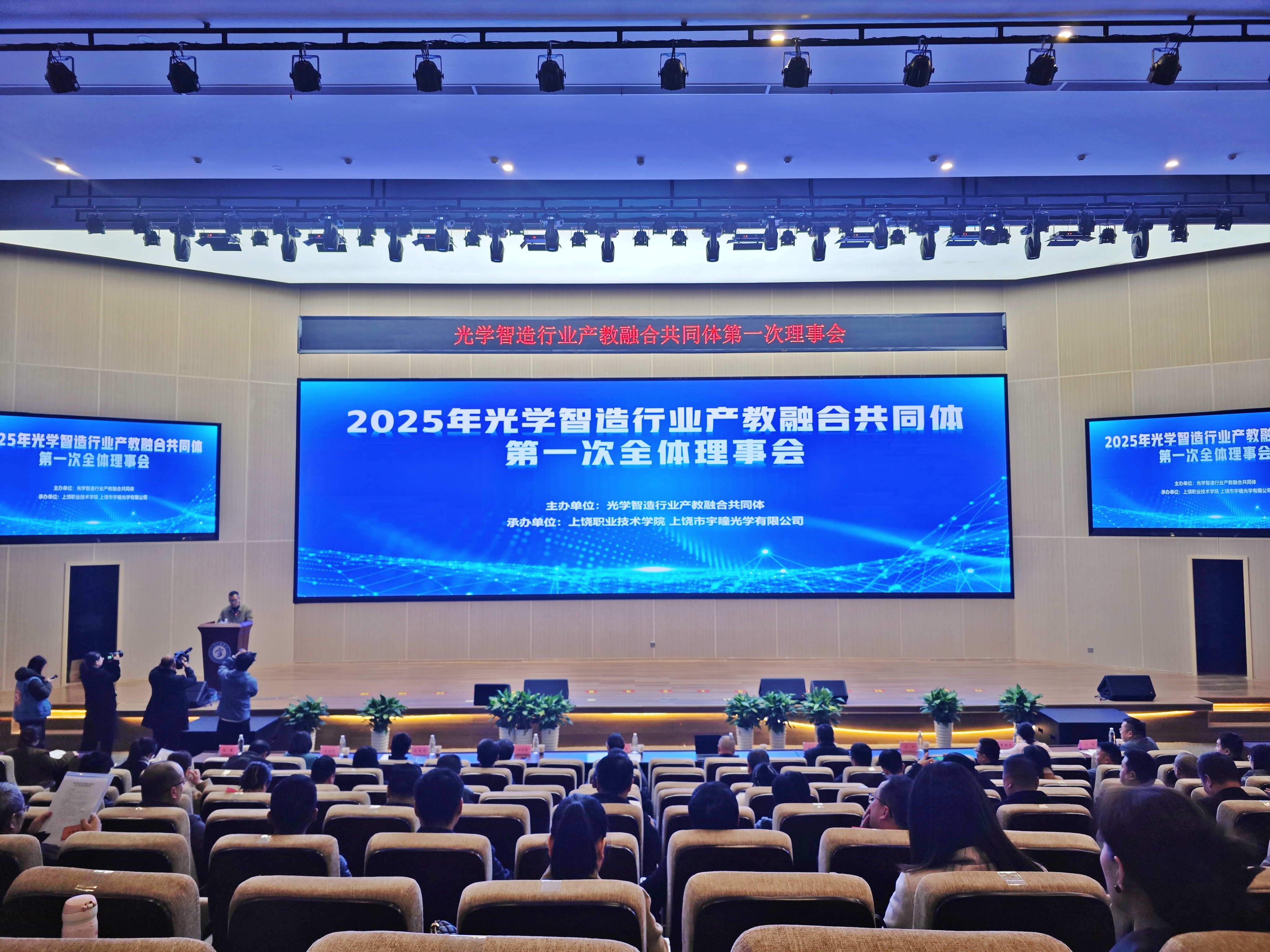 2025年12月24日,光学智造行业产教融合共同体第一届理事会第一次会议在我校正心厅隆重召开。来自行业内的全体理事候选人、特邀嘉宾及相关单位代表共60余人齐聚一堂,共商共同体建设发展大计,现场气氛庄重而热烈。