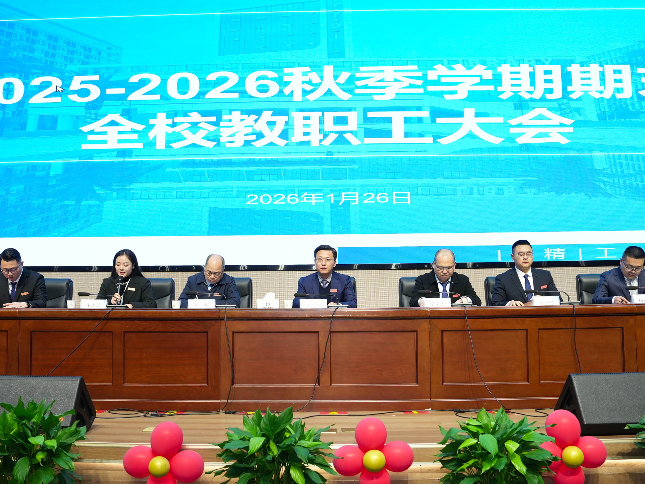 1月26日,岁至腊八,粥暖情浓,辞旧迎新之际,上饶宇瞳学校2025-2026学年度上学期期末全体教职工大会在正心厅隆重召开。