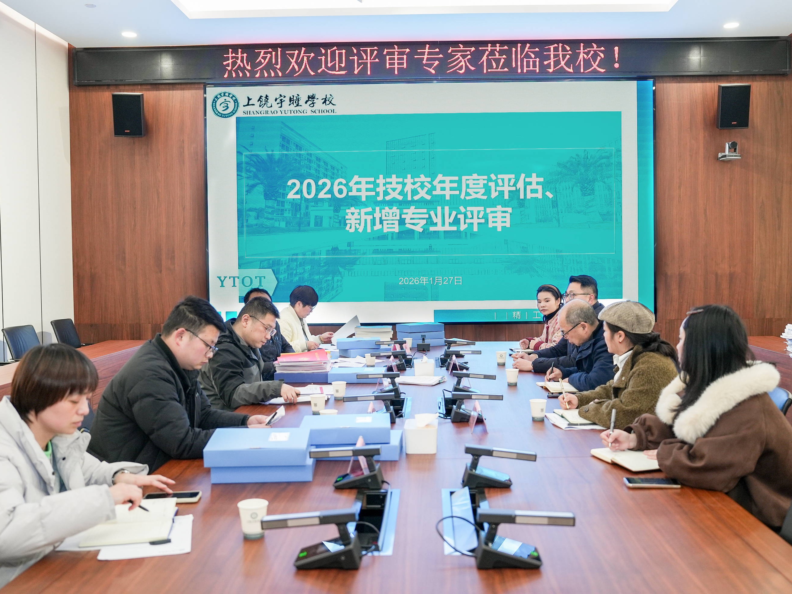 1月27日,上饶市宇瞳技工学校迎来2026年技校年度评估专家评审。专家组黄先钦、吕春德、徐旭雄,上饶市人社局南璇、姜瑛莅临我校,对学校办学质量及新增专业建设成效开展全方位、深层次的评估指导。