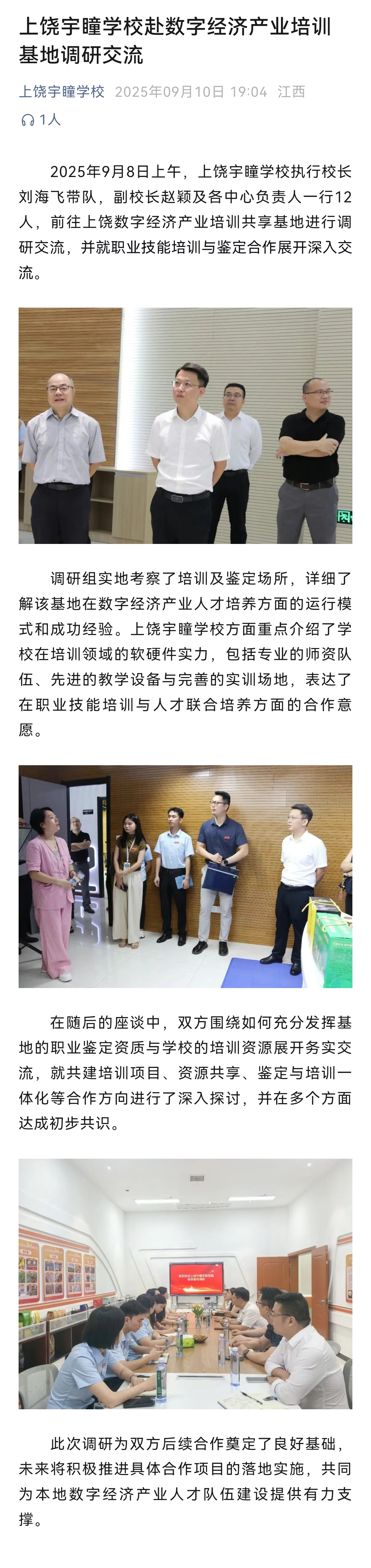 上饶宇瞳学校赴数字经济产业培训基地调研交流