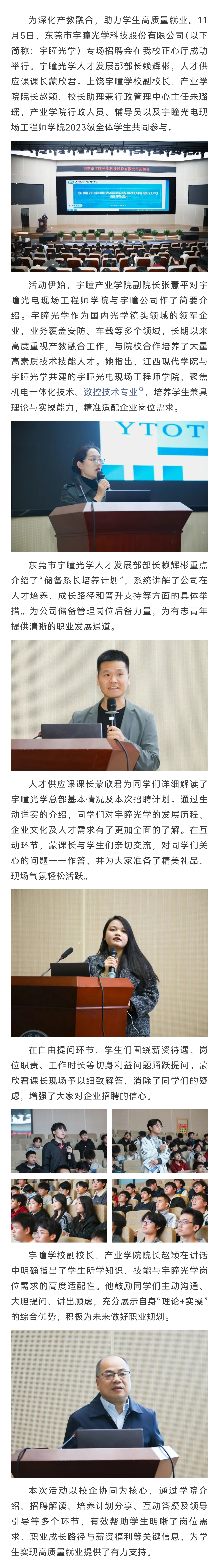 【产业学院】校企协同,共赢未来 | 宇瞳光学专场招聘会在我校顺利举办