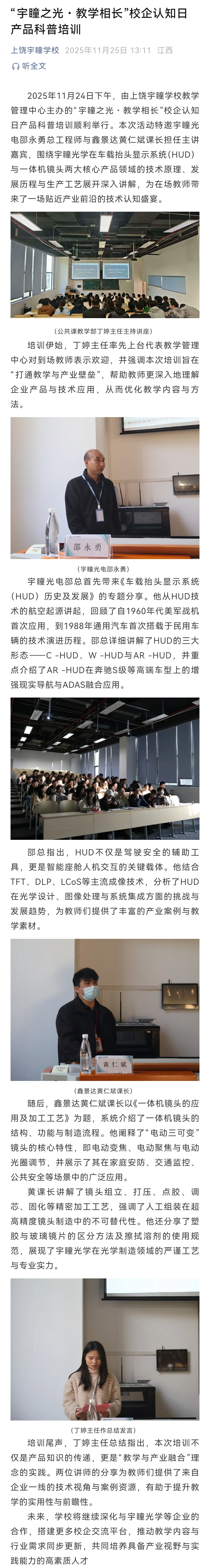 “宇瞳之光・教学相长”校企认知日产品科普培训