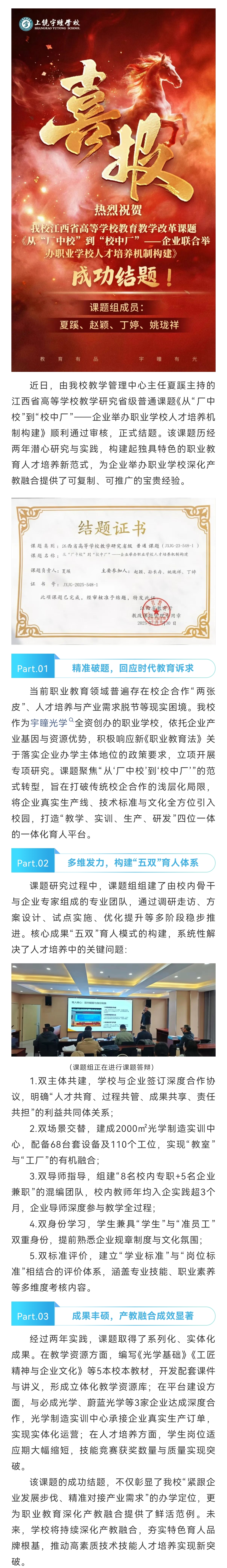 【喜报】我校省级教改课题圆满结题!创新“校中厂”模式 筑牢产教融合新生态