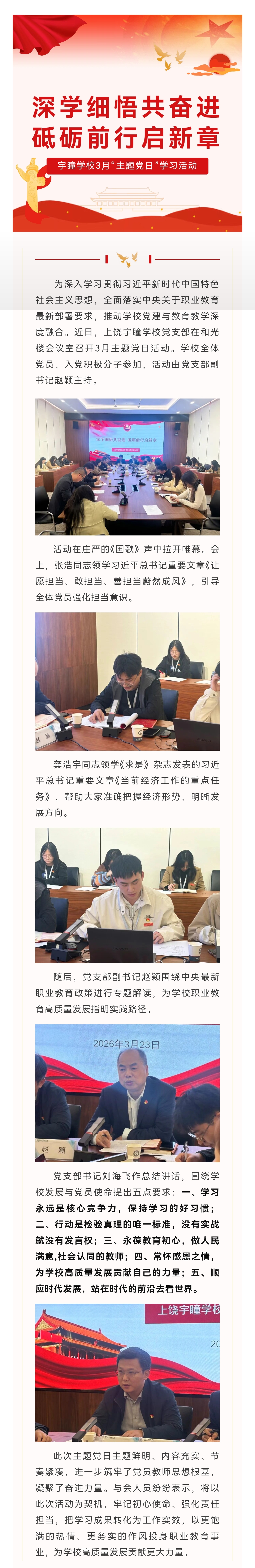 深学细悟共奋进 砥砺前行启新章 | 上饶宇瞳学校党支部召开3月主题党日活动