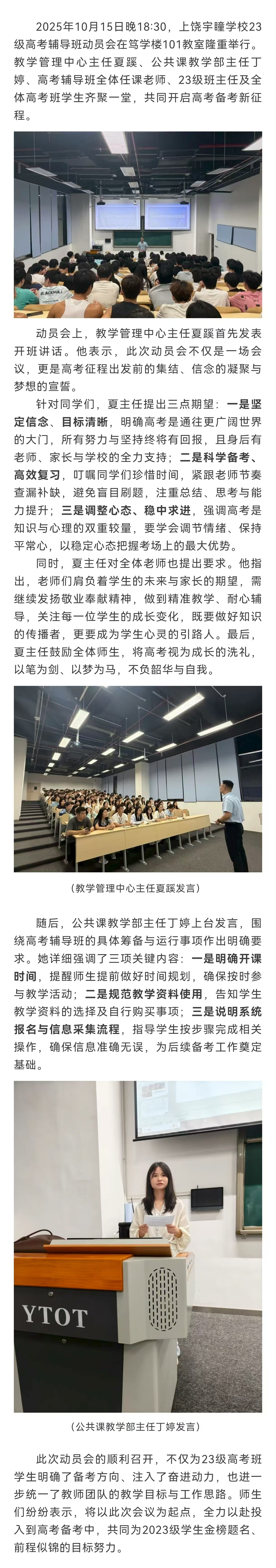 【教研共进】上饶宇瞳学校23级高考辅导班动员会顺利召开,吹响冲刺备考集结号